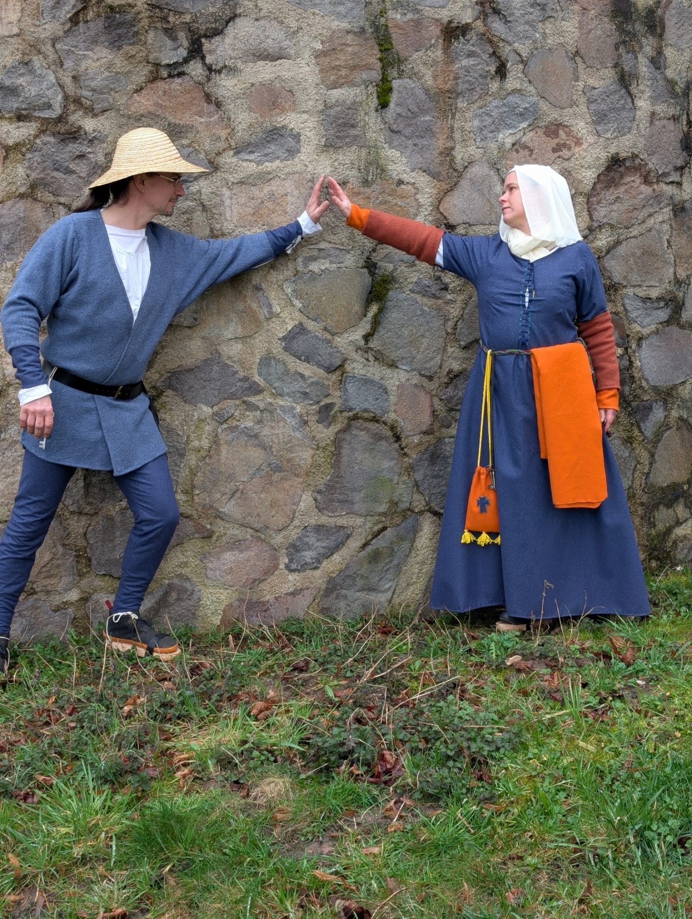 Die Darstellung ist zeitlich im Spätmittelalter um 1470 einzuordnen. Marlen und Rocco versuchen, die Kleidung dieser Zeit nicht nur optisch, sondern auch in ihrer praktischen Funktion nachzuvollziehen und anschaulich zu zeigen, wie alltagstauglich sie für körperlich anstrengende Arbeiten gewesen sein könnte.
