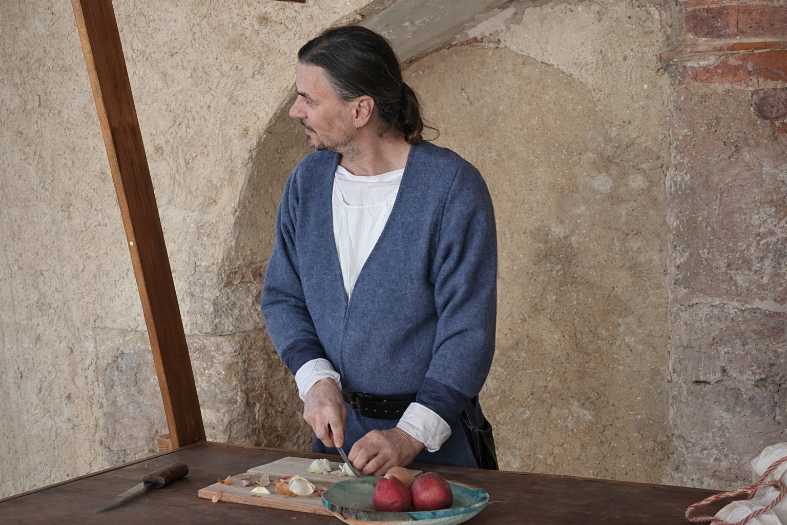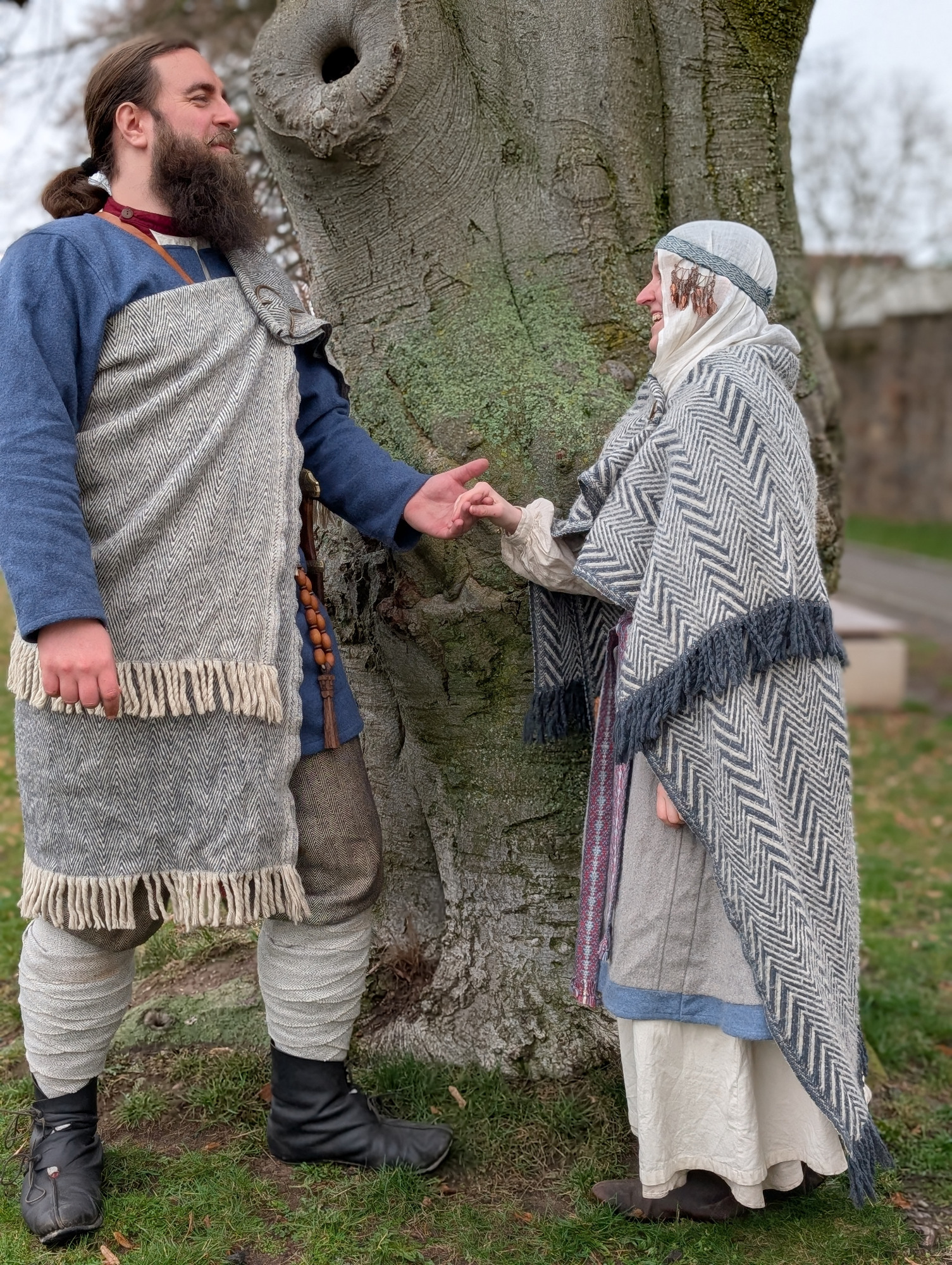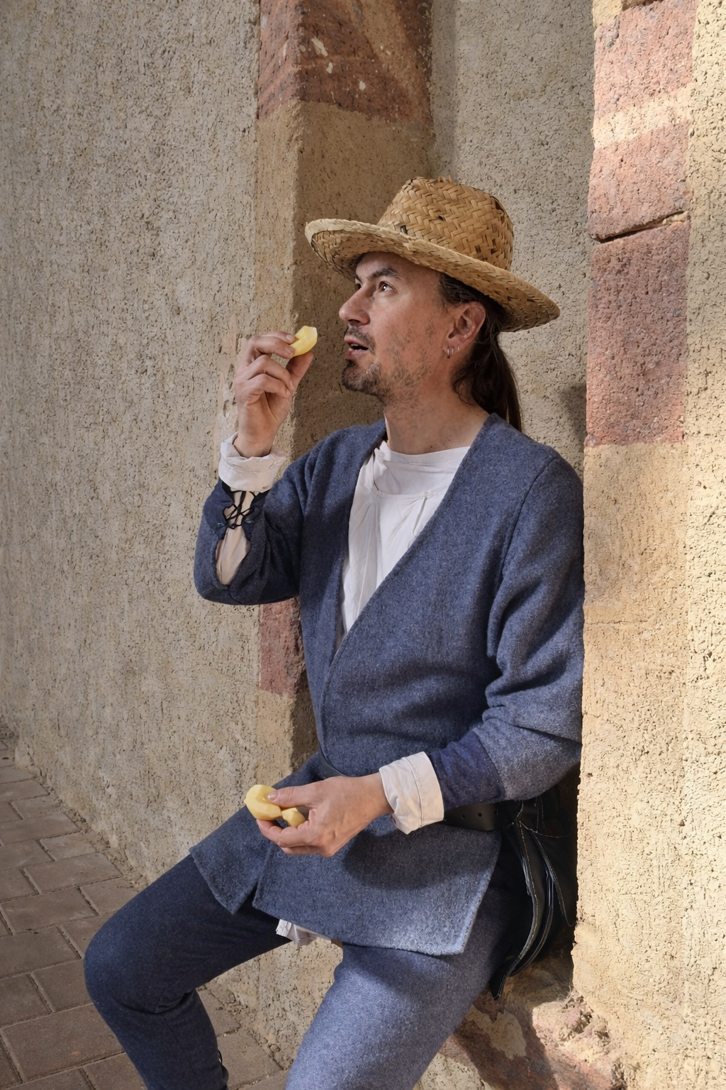 Die Darstellung ist zeitlich im Spätmittelalter um 1470 einzuordnen. Marlen und Rocco versuchen, die Kleidung dieser Zeit nicht nur optisch, sondern auch in ihrer praktischen Funktion nachzuvollziehen und anschaulich zu zeigen, wie alltagstauglich sie für körperlich anstrengende Arbeiten gewesen sein könnte.