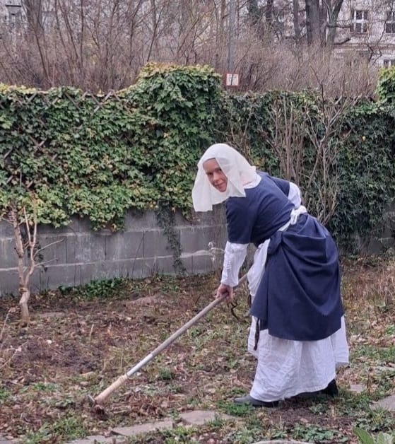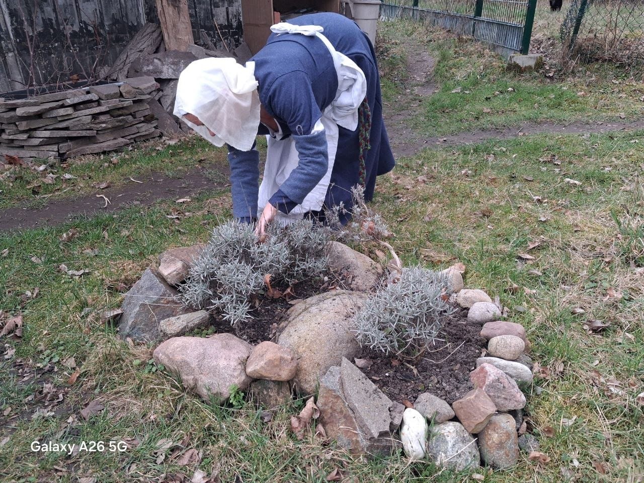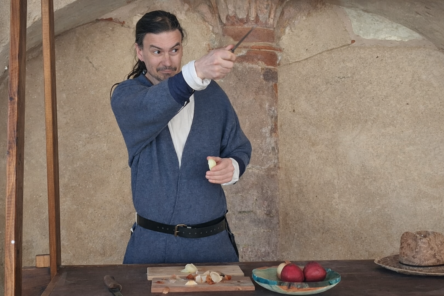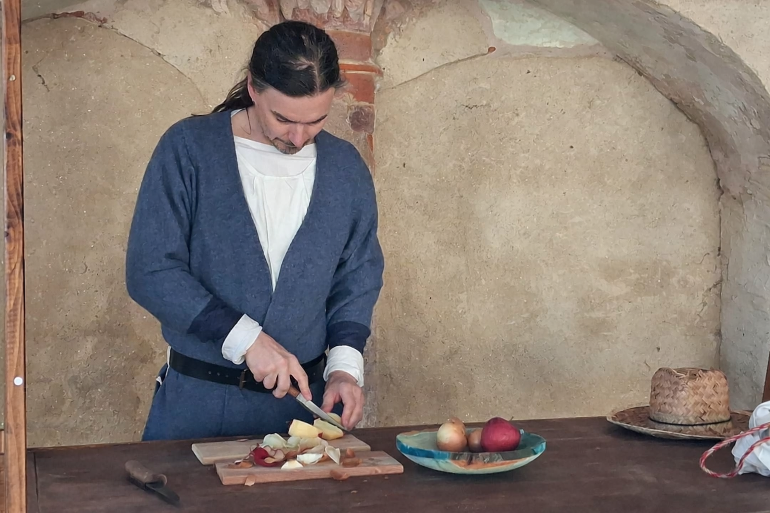 Die Darstellung ist zeitlich im Spätmittelalter um 1470 einzuordnen. Marlen und Rocco versuchen, die Kleidung dieser Zeit nicht nur optisch, sondern auch in ihrer praktischen Funktion nachzuvollziehen und anschaulich zu zeigen, wie alltagstauglich sie für körperlich anstrengende Arbeiten gewesen sein könnte.