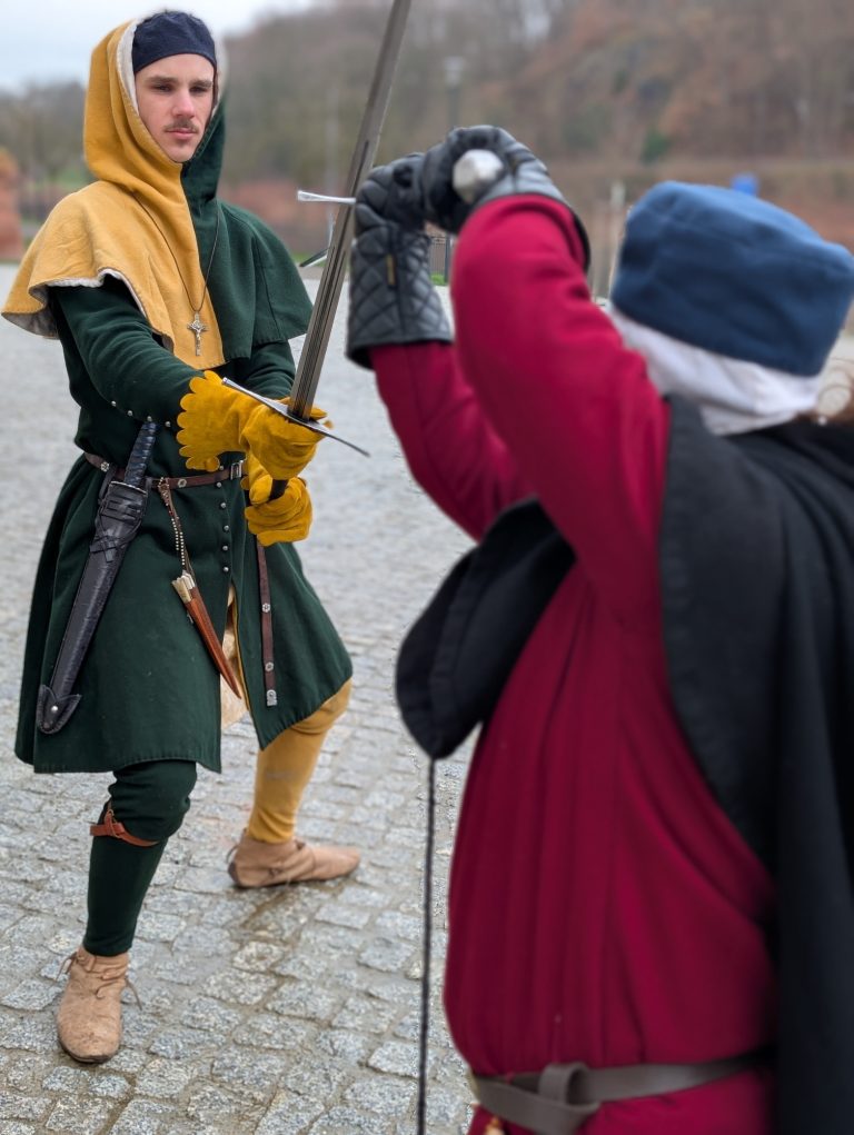 Ergänzend dazu arbeiten wir mit weiteren historischen Quellen, unter anderem von Joachim Meyer, Fiore dei Liberi sowie mit weiteren überlieferten Fechtbüchern und Sammelwerken. Durch den vergleichenden Umgang mit diesen Quellen können unterschiedliche Kampfstile, Techniken und Entwicklungslinien nachvollzogen und anschaulich vermittelt werden.