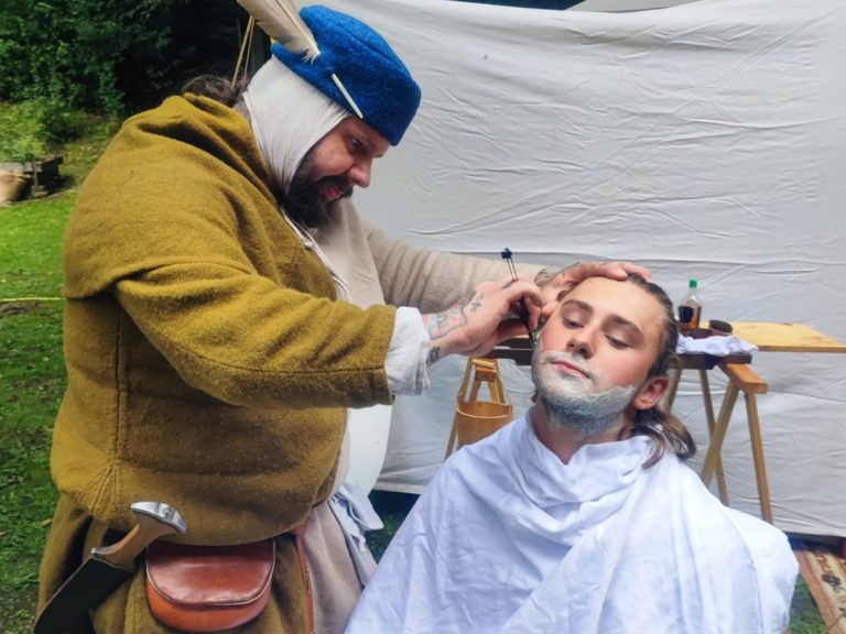 Unser Badermeister Hans Wymundt, dargestellt von unserem Mitglied Teddy, legt besonderen Wert auf handwerkliches Geschick im Umgang mit historischem Werkzeug sowie auf eine qualitativ hochwertige, quellenbasierte Arbeitsweise. Die Rekonstruktion historischer Arbeitsabläufe ist dabei stets mit der Herausforderung verbunden, geeignete Quellen zu finden, die den Alltag vergangener Zeiten möglichst genau widerspiegeln.