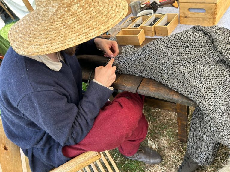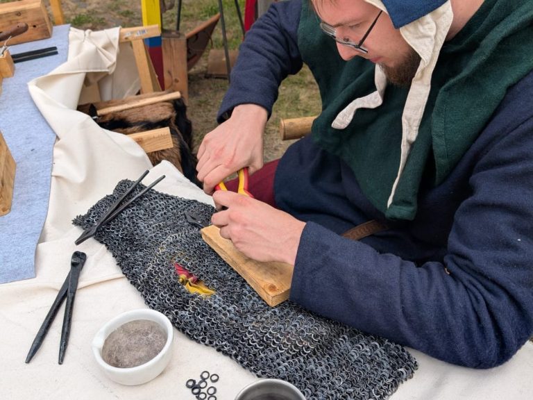 Paul hat es sich zur Aufgabe gemacht, möglichst viele Aspekte dieses Handwerks nach besten Kräften nachzuvollziehen. Dazu gehören sowohl das Flechten und Anpassen von Ringpanzern als auch die Arbeitsschritte vom Draht bis zum fertigen Ring. Besonders faszinierend ist für ihn die Möglichkeit, eines der zentralen Symbole des mittelalterlichen Kriegerstandes selbst herzustellen – ein Ausrüstungsstück, das in seiner Bedeutung dem Schwert kaum nachstand. Darüber hinaus steht für ihn der praktische Nutzen im Vordergrund: einen Gegenstand zu fertigen, der seinem Träger im besten Fall das Überleben auf dem Schlachtfeld ermöglichen konnte. Ein korrekt angepasster Ringpanzer soll dabei nicht nur gut aussehen, sondern funktionieren, sich bewegen lassen und „arbeiten“, wie es historische Vorbilder taten.