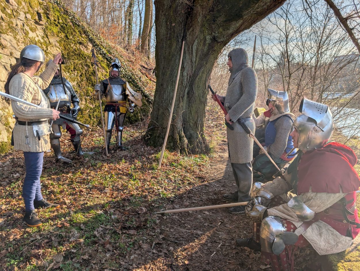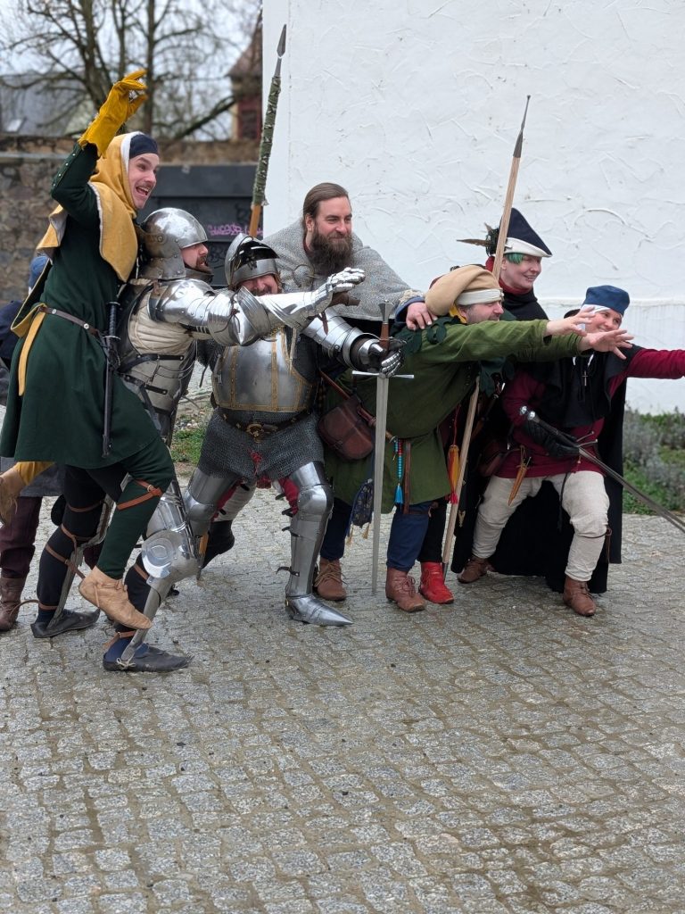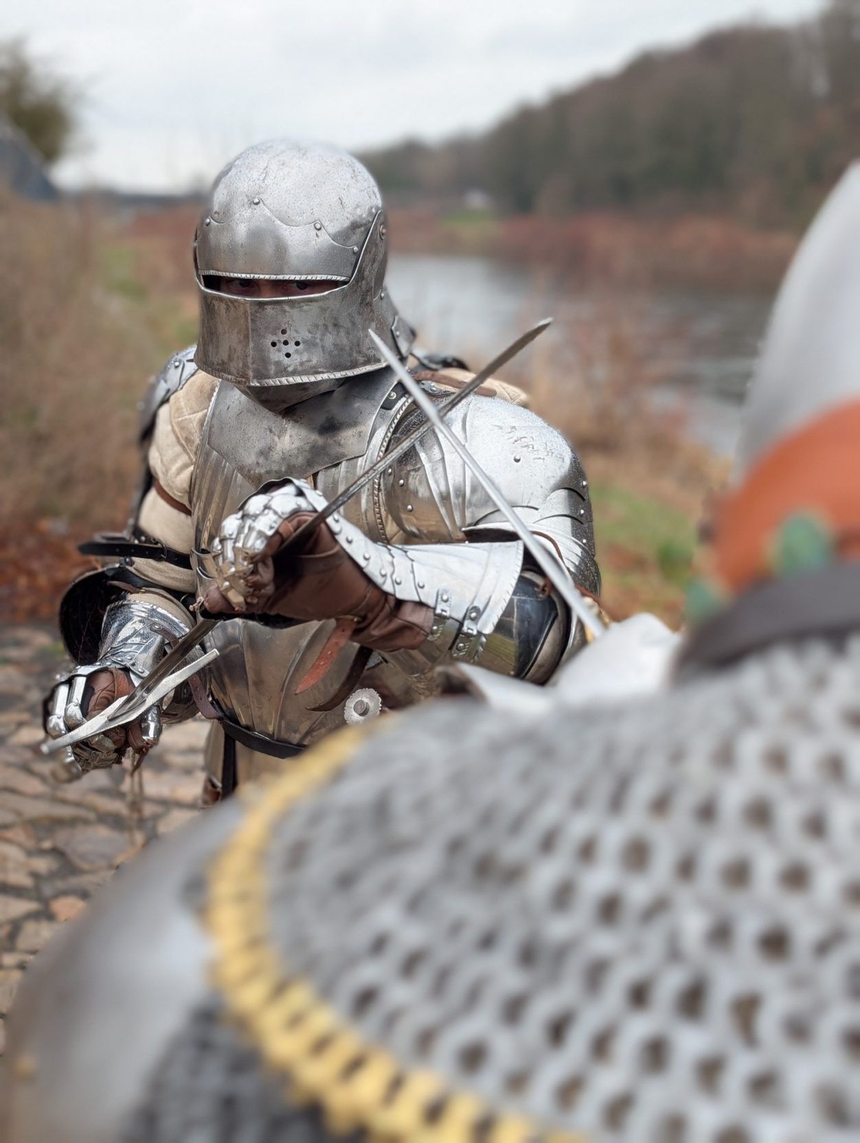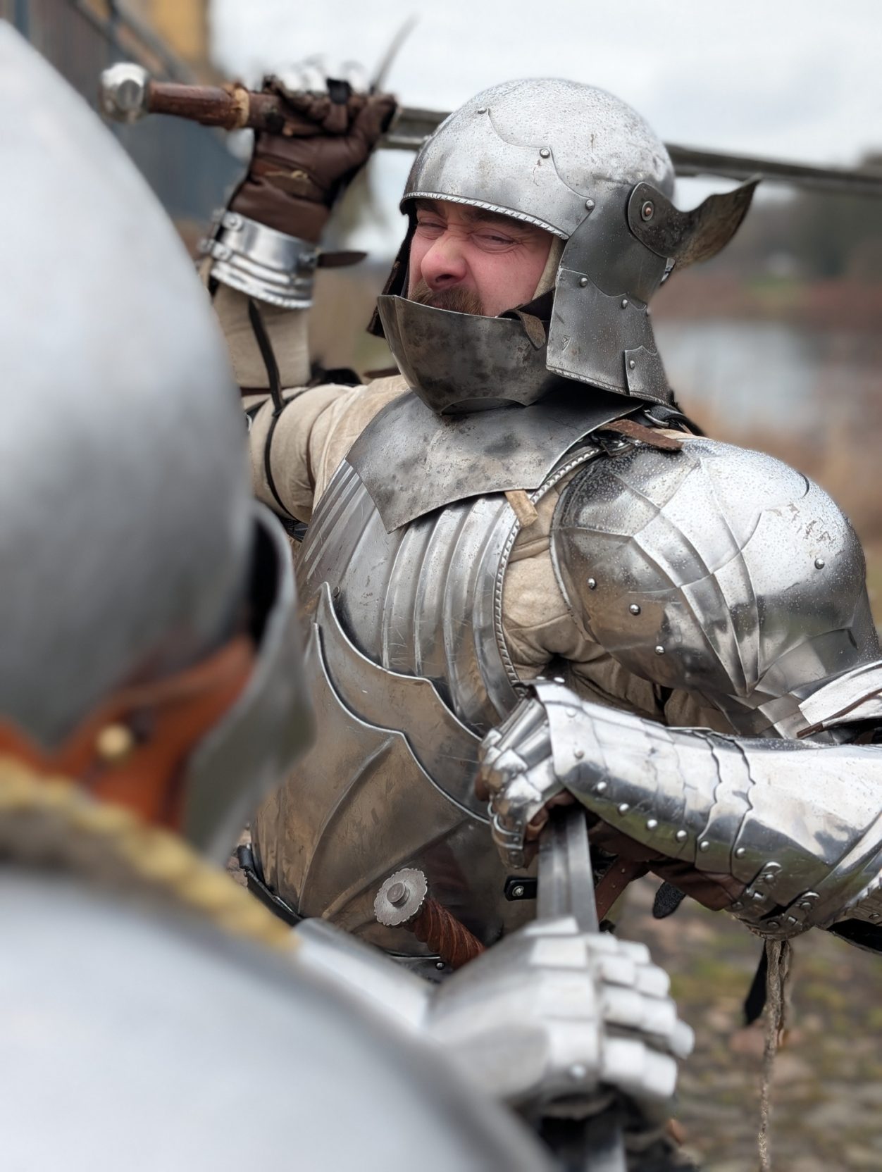 Das Ganze hat aber noch einen weiteren wichtigen Hintergrund. Wir gewöhnen uns nach der Winterpause wieder an die Bewegung in Rüstung und trainieren ganz nebenbei Ausdauer, Kraft und Beweglichkeit. Dabei merkt man schnell, wo noch nachgebessert werden muss. Denn nichts ist unangenehmer als ein zwickender Harnisch.