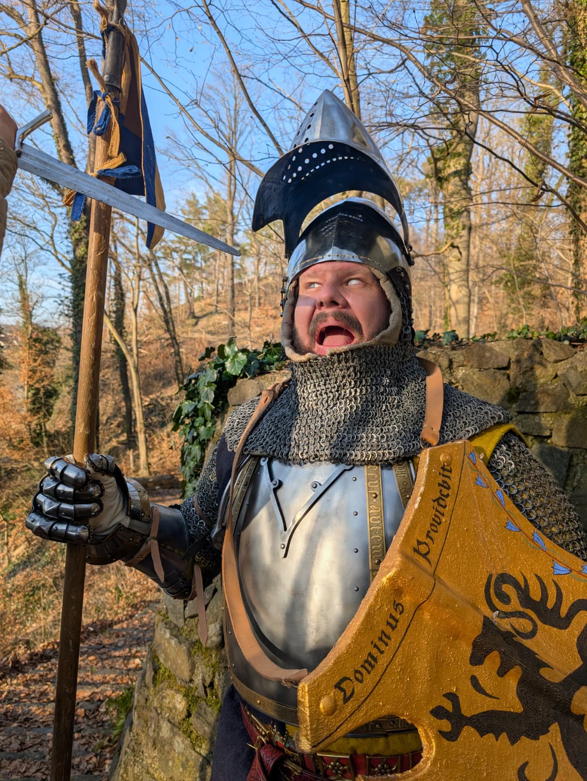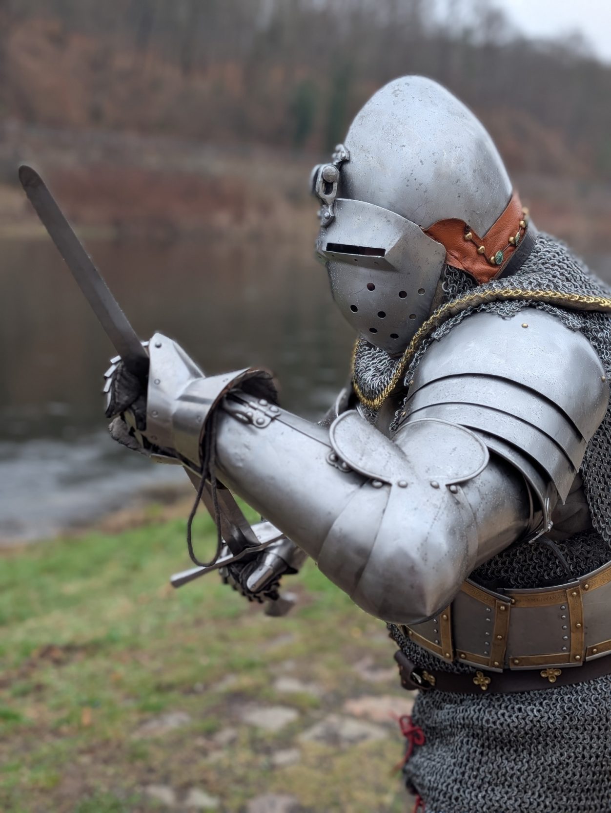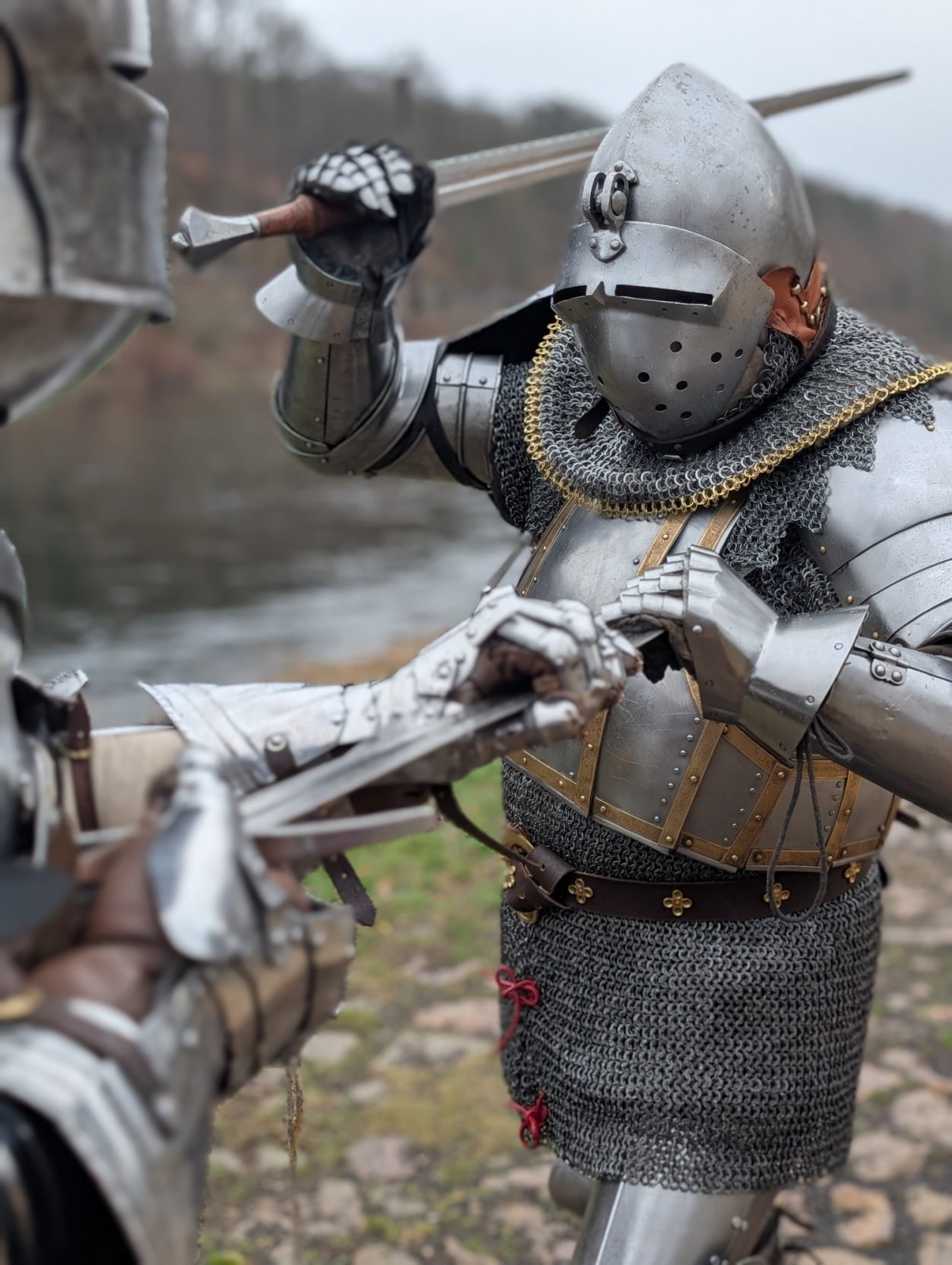 Das Ganze hat aber noch einen weiteren wichtigen Hintergrund. Wir gewöhnen uns nach der Winterpause wieder an die Bewegung in Rüstung und trainieren ganz nebenbei Ausdauer, Kraft und Beweglichkeit. Dabei merkt man schnell, wo noch nachgebessert werden muss. Denn nichts ist unangenehmer als ein zwickender Harnisch.