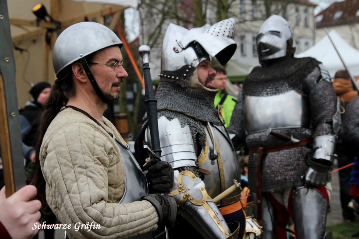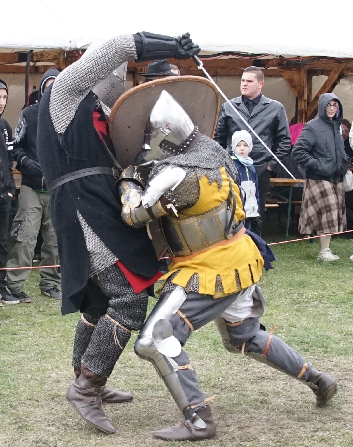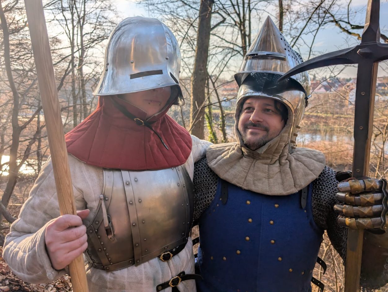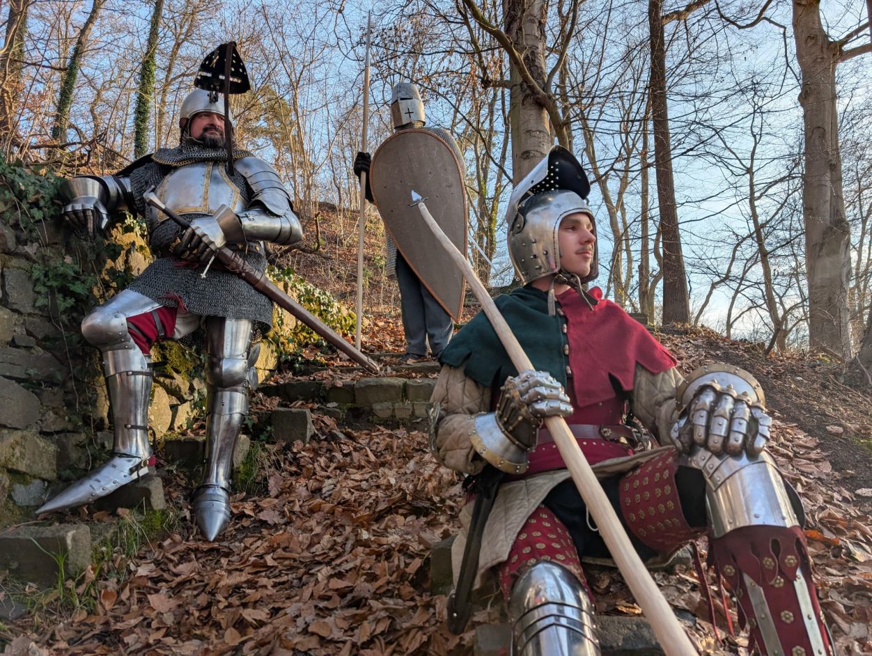 Das Ganze hat aber noch einen weiteren wichtigen Hintergrund. Wir gewöhnen uns nach der Winterpause wieder an die Bewegung in Rüstung und trainieren ganz nebenbei Ausdauer, Kraft und Beweglichkeit. Dabei merkt man schnell, wo noch nachgebessert werden muss. Denn nichts ist unangenehmer als ein zwickender Harnisch.