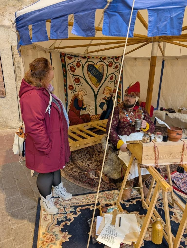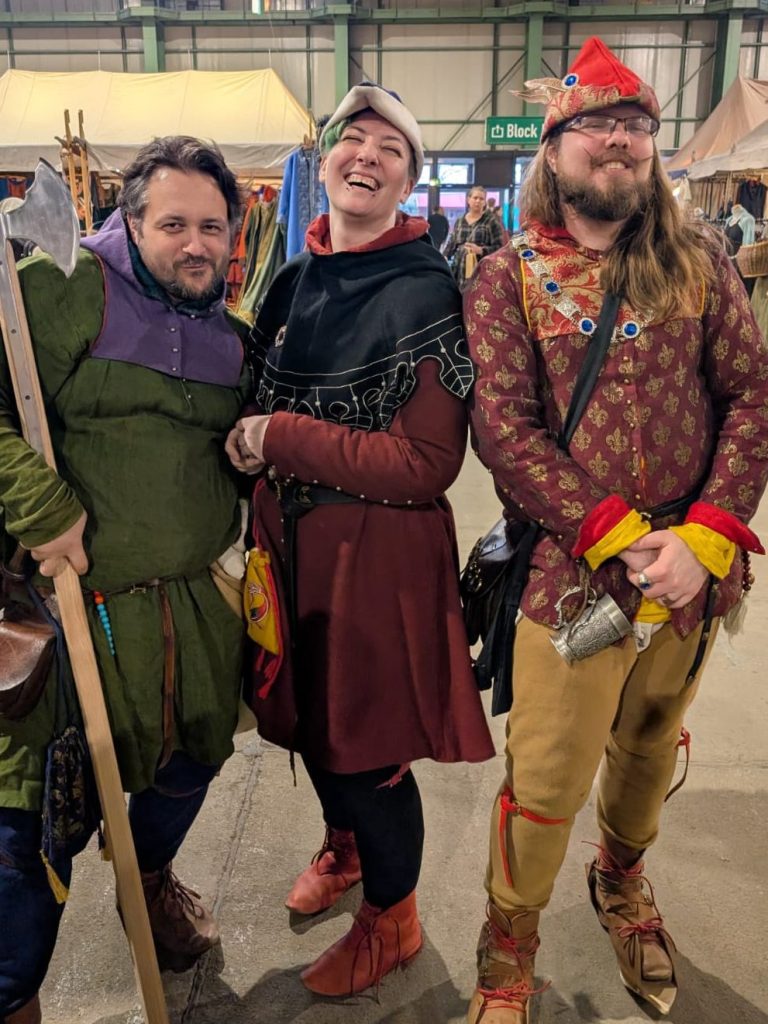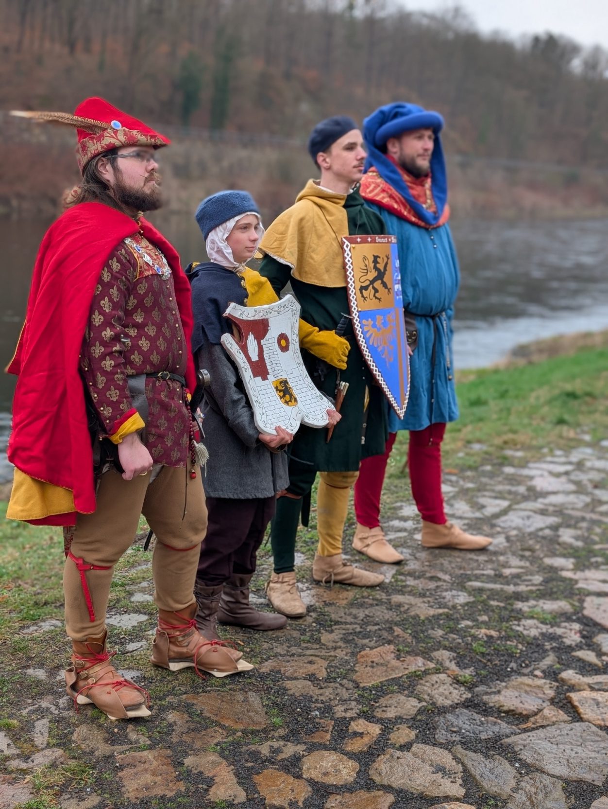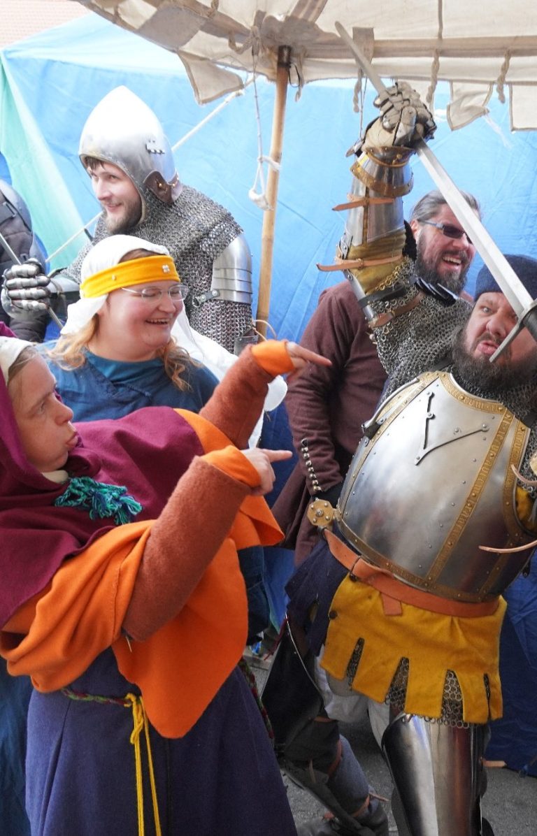 Dabei durfte jeder seine liebste Darstellung wählen. Ob Krieger, Handwerker, Kaufmann, Geistlicher, Adliger oder Bürgerlicher – die ganze bunte Vielfalt unseres Hobbys war vertreten. So kamen viele unterschiedliche Gewandungen zusammen und zeigten einmal mehr, was 1000 Jahre Mittelalter alles zu bieten haben.