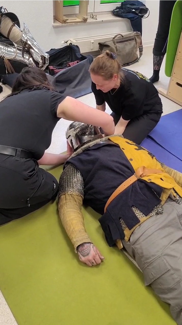 Gerade bei unserer Mittelalterdarstellung und Living History ist es wichtig, nicht nur Geschichte authentisch zu zeigen, sondern auch Verantwortung füreinander zu übernehmen. Umso wertvoller war es, wichtige Maßnahmen der Ersten Hilfe aufzufrischen und auf unsere besonderen Gegebenheiten anzuwenden.