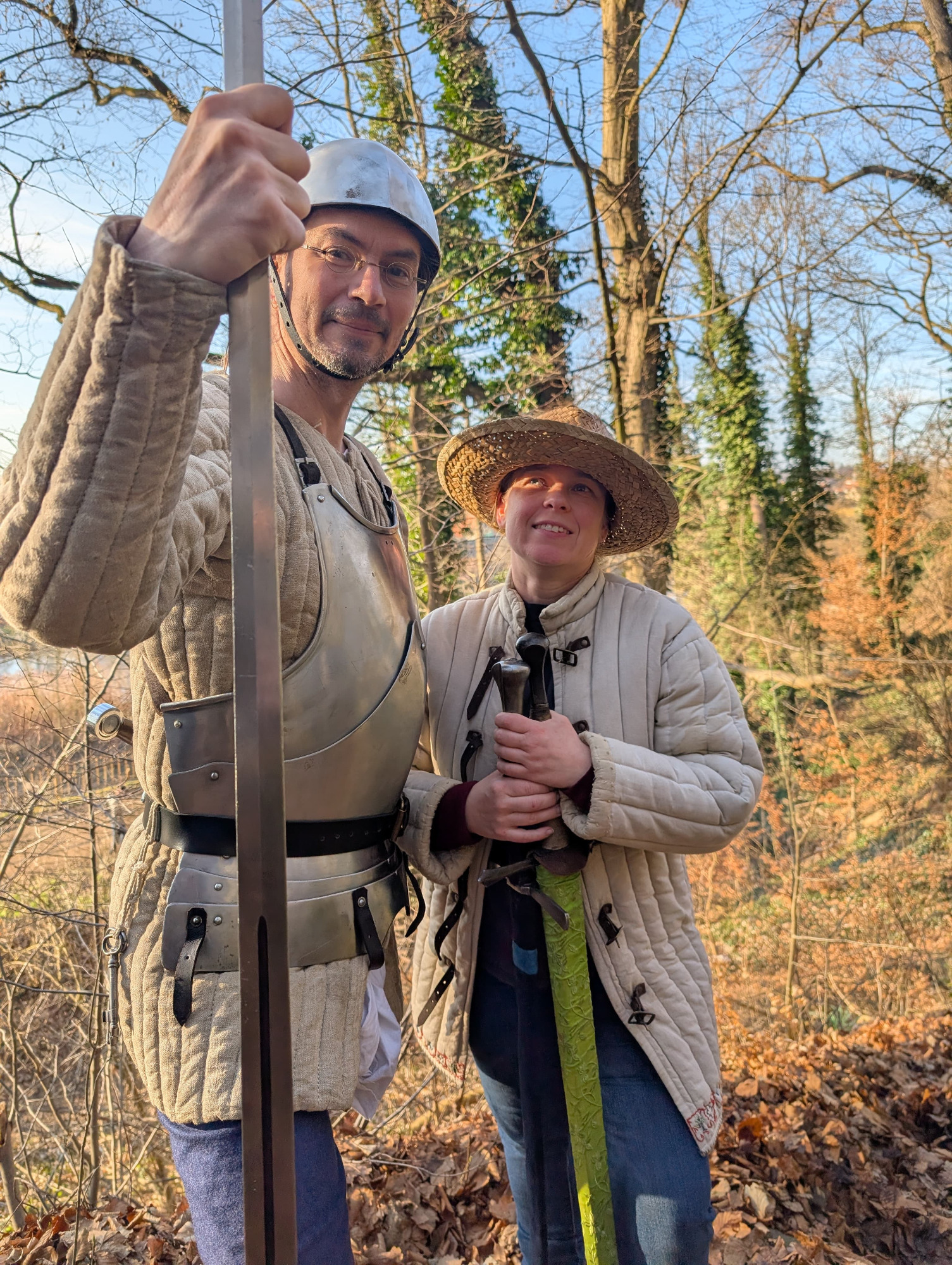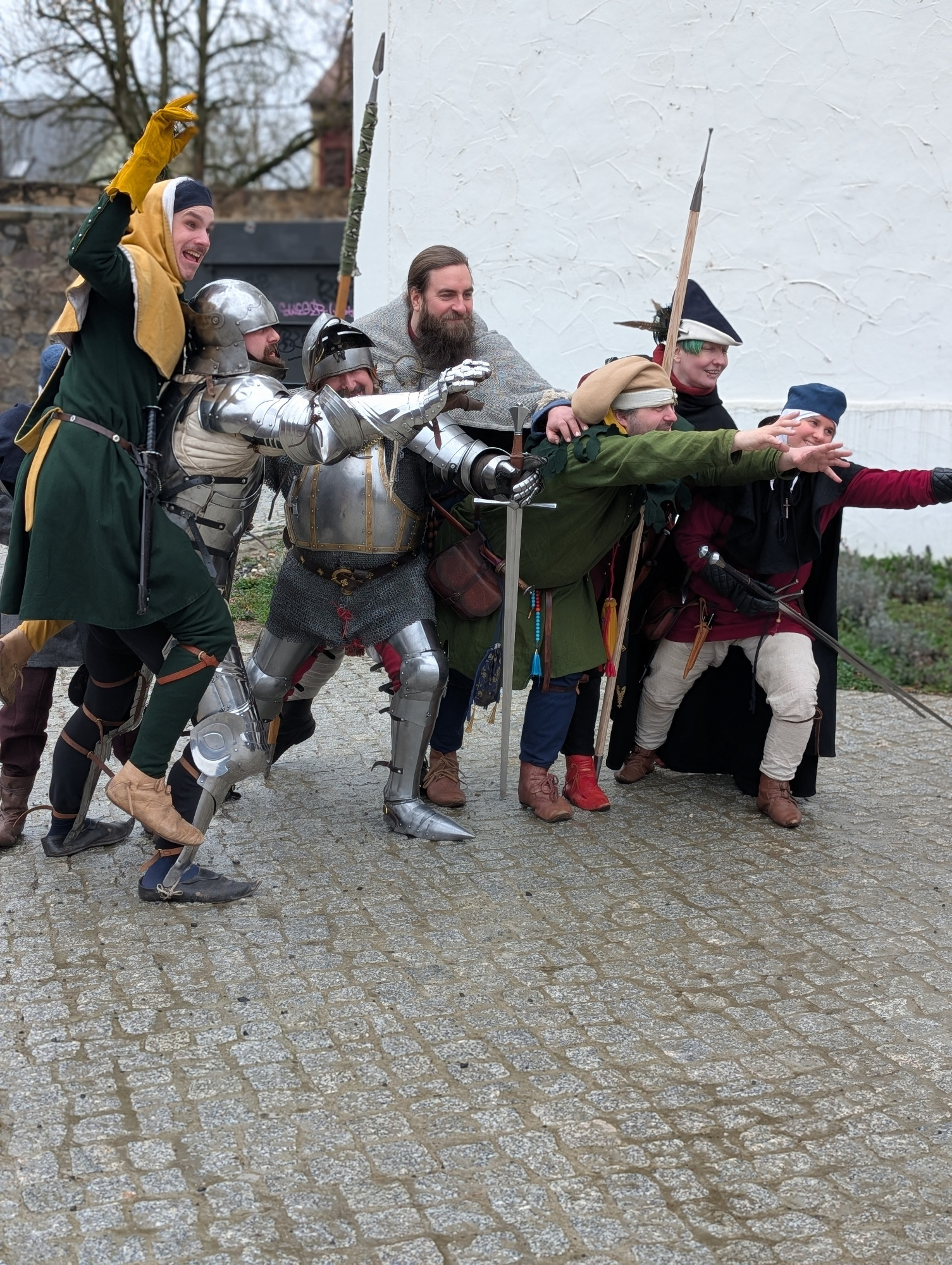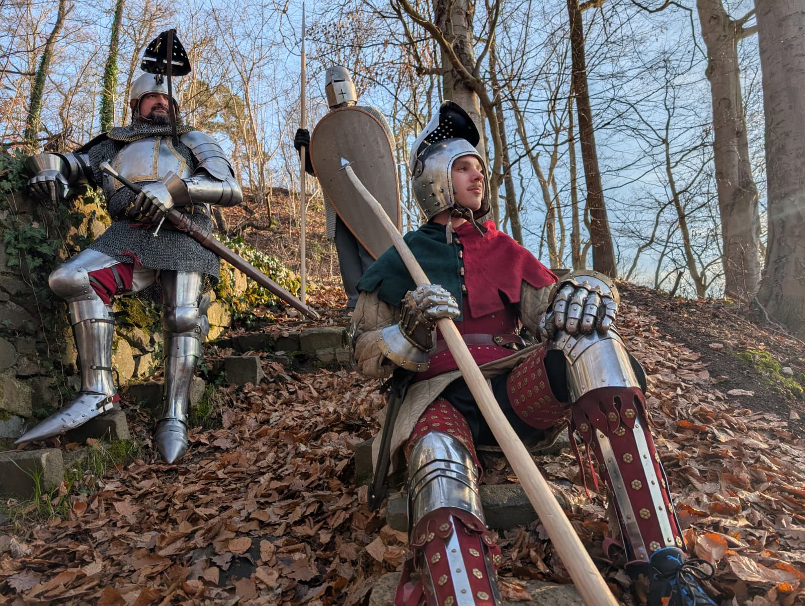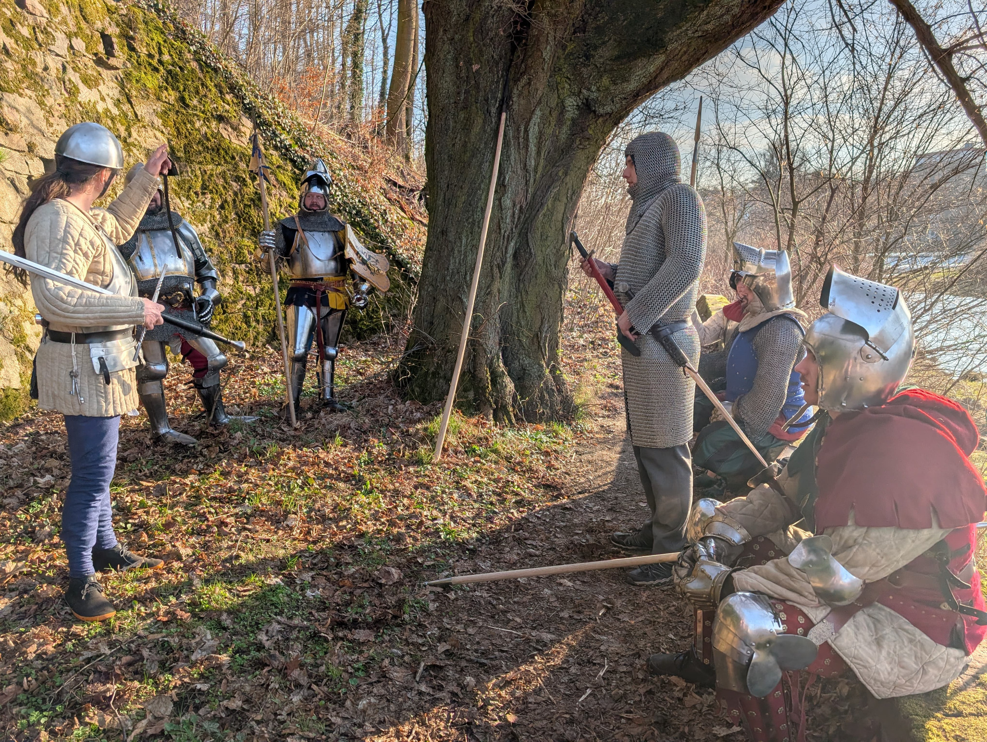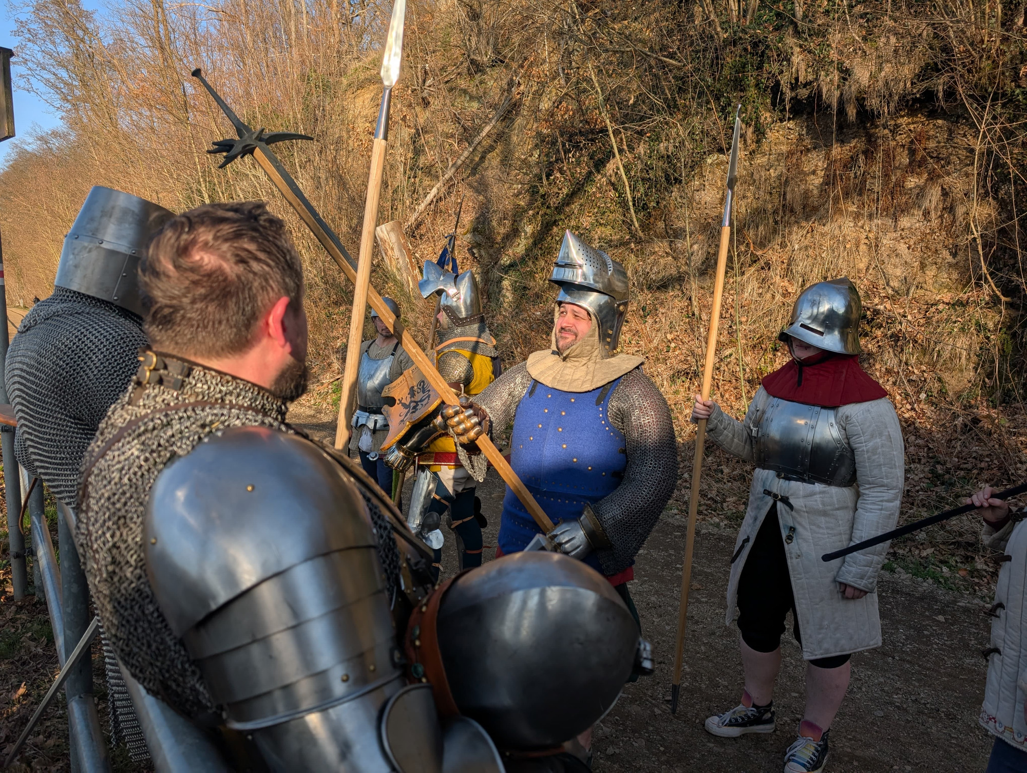 Das Ganze hat aber noch einen weiteren wichtigen Hintergrund. Wir gewöhnen uns nach der Winterpause wieder an die Bewegung in Rüstung und trainieren ganz nebenbei Ausdauer, Kraft und Beweglichkeit. Dabei merkt man schnell, wo noch nachgebessert werden muss. Denn nichts ist unangenehmer als ein zwickender Harnisch.
