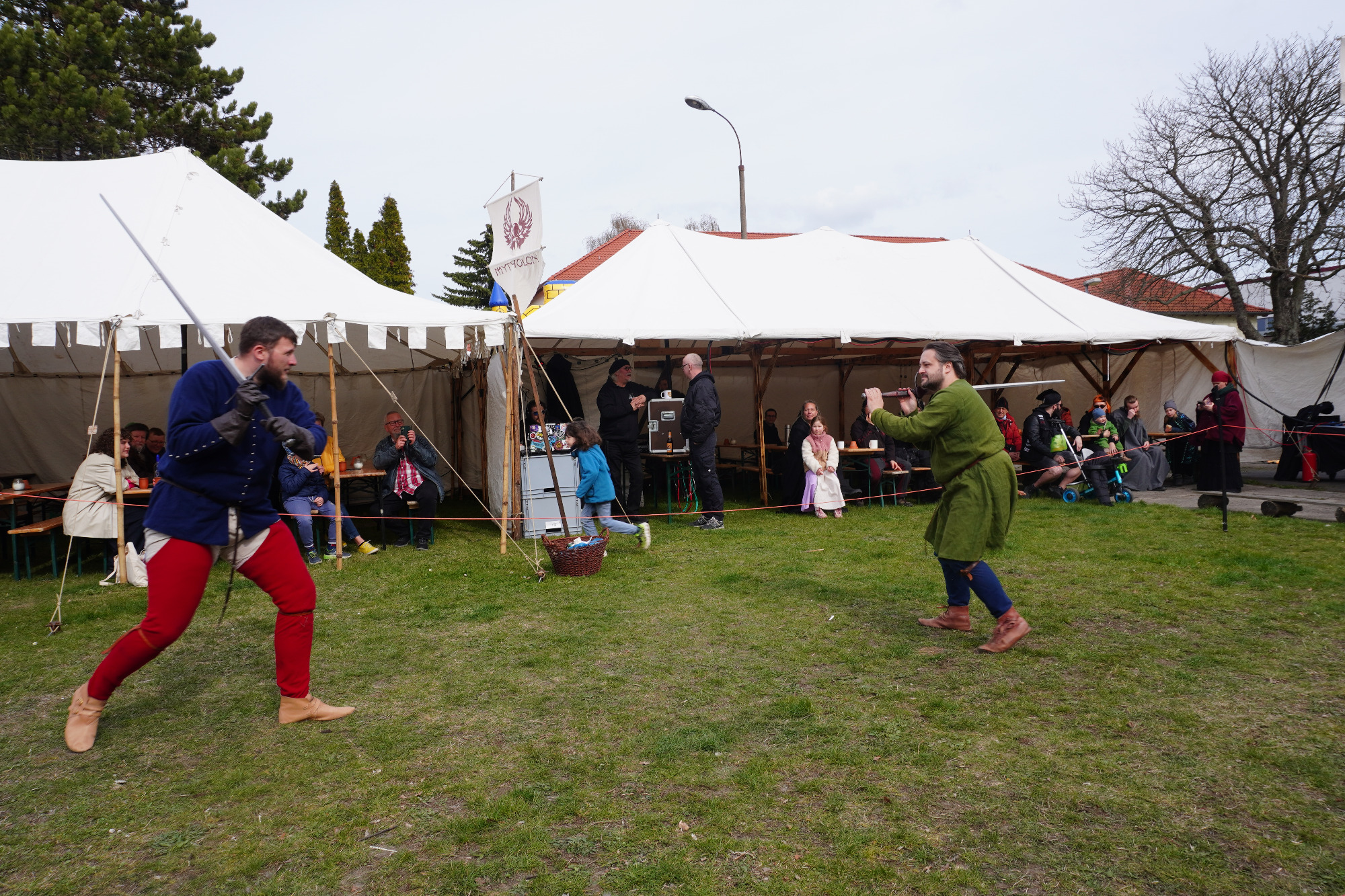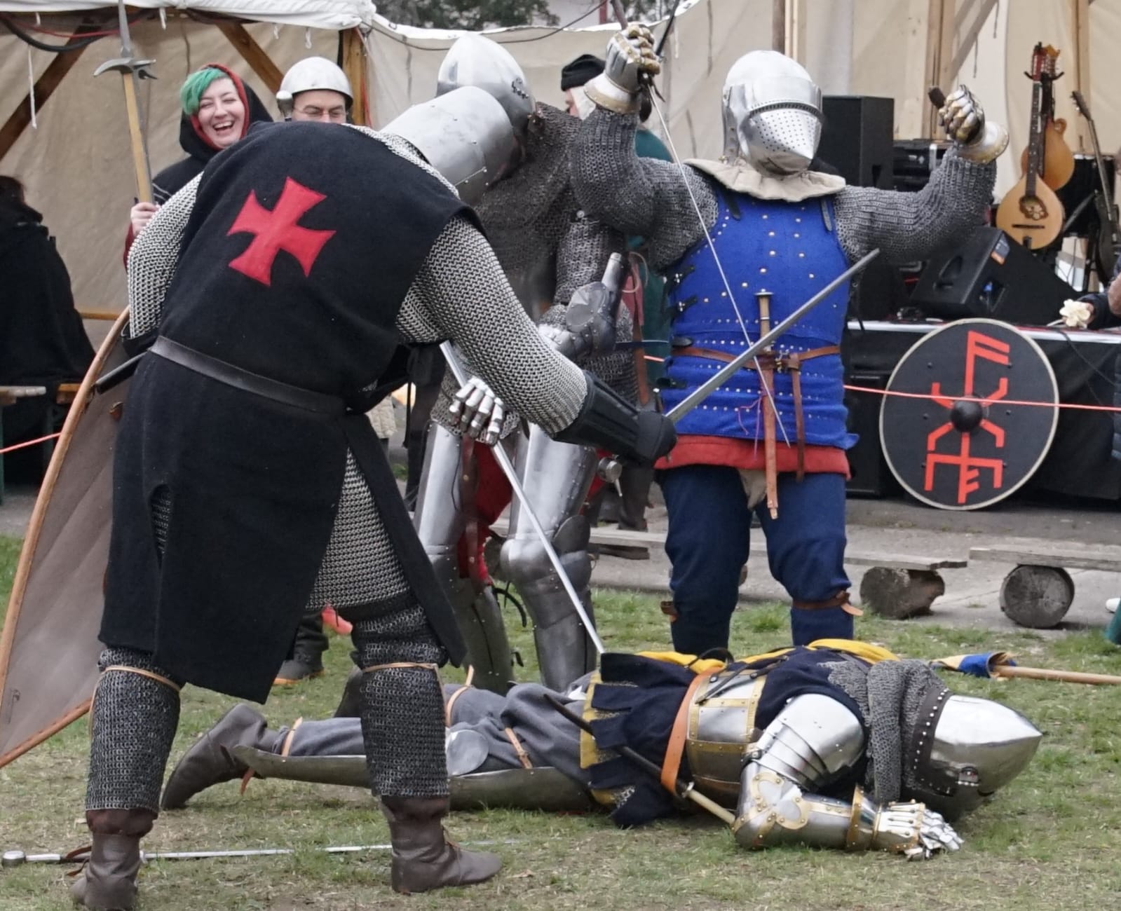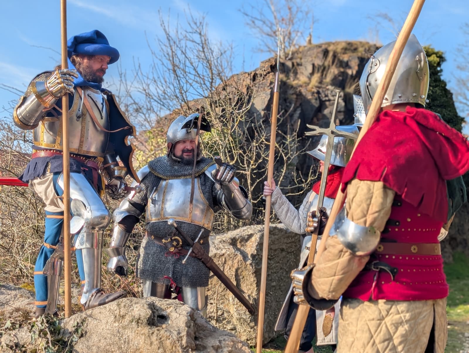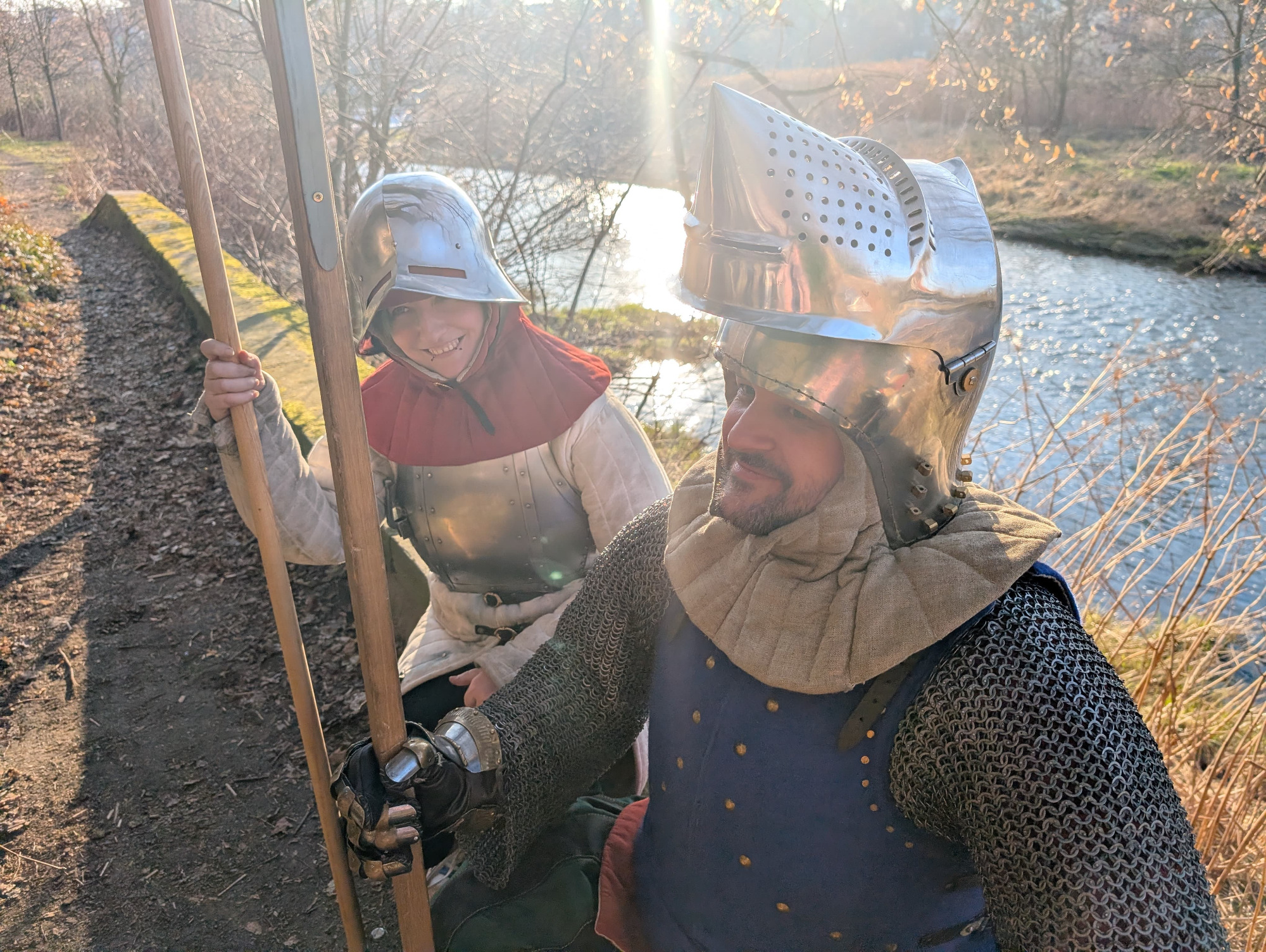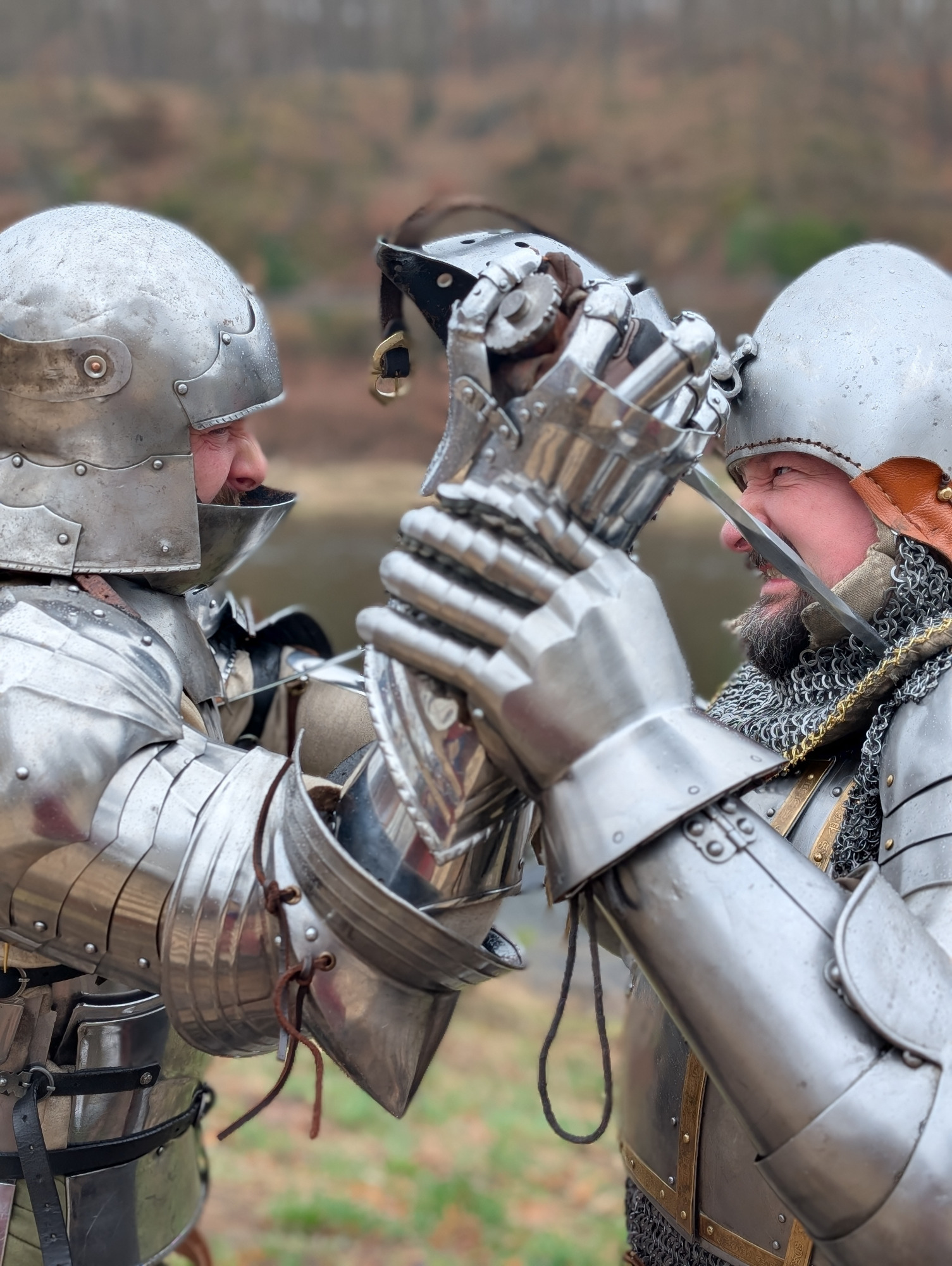 Das Ganze hat aber noch einen weiteren wichtigen Hintergrund. Wir gewöhnen uns nach der Winterpause wieder an die Bewegung in Rüstung und trainieren ganz nebenbei Ausdauer, Kraft und Beweglichkeit. Dabei merkt man schnell, wo noch nachgebessert werden muss. Denn nichts ist unangenehmer als ein zwickender Harnisch.