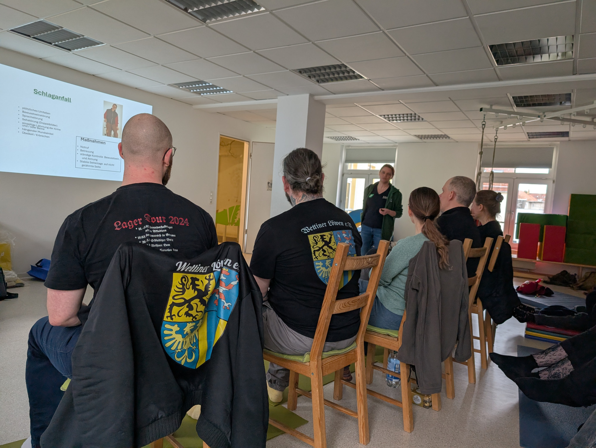 Gerade bei unserer Mittelalterdarstellung und Living History ist es wichtig, nicht nur Geschichte authentisch zu zeigen, sondern auch Verantwortung füreinander zu übernehmen. Umso wertvoller war es, wichtige Maßnahmen der Ersten Hilfe aufzufrischen und auf unsere besonderen Gegebenheiten anzuwenden.