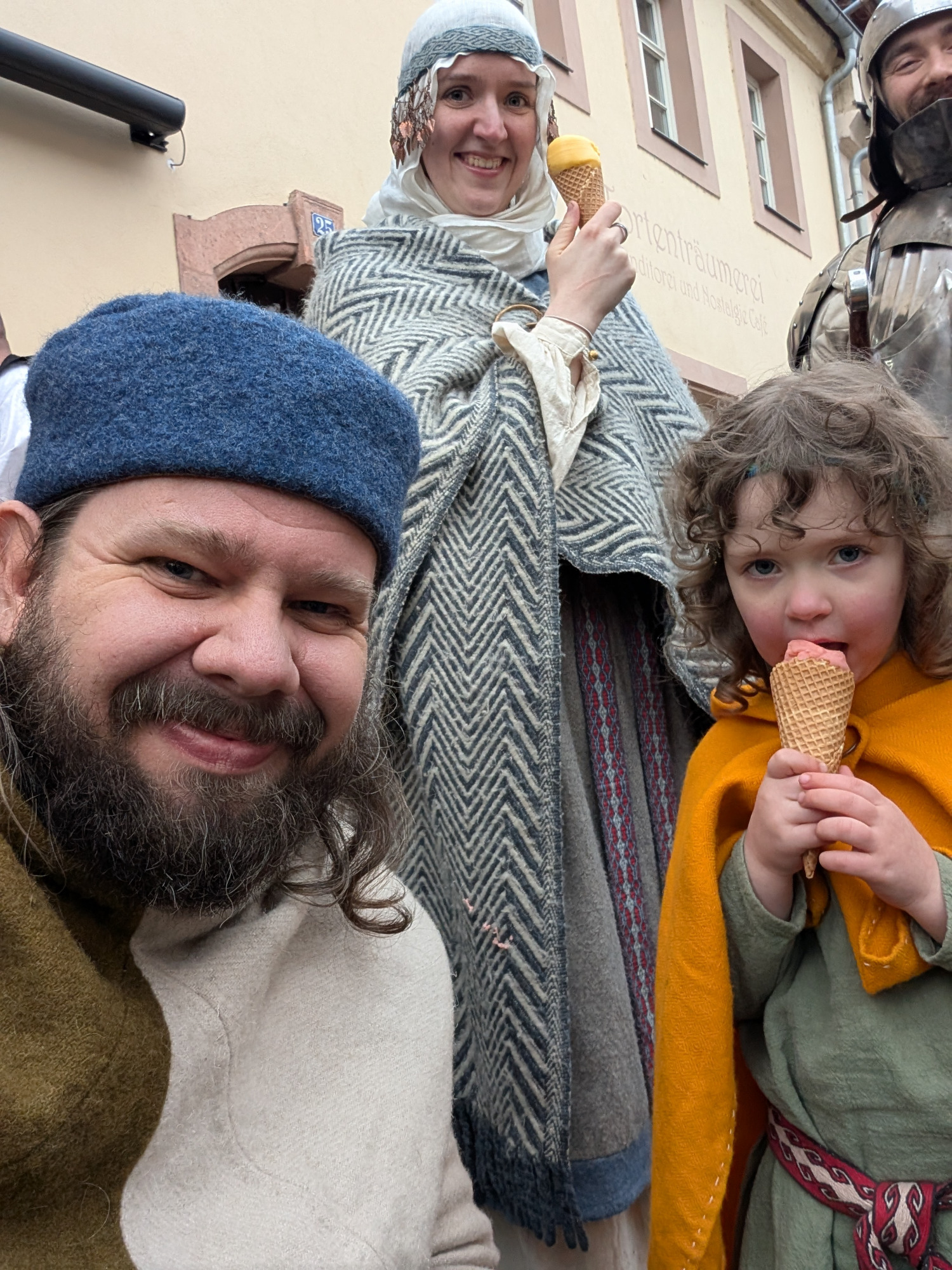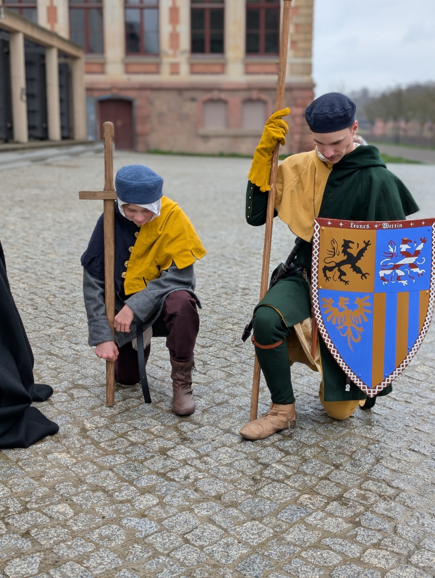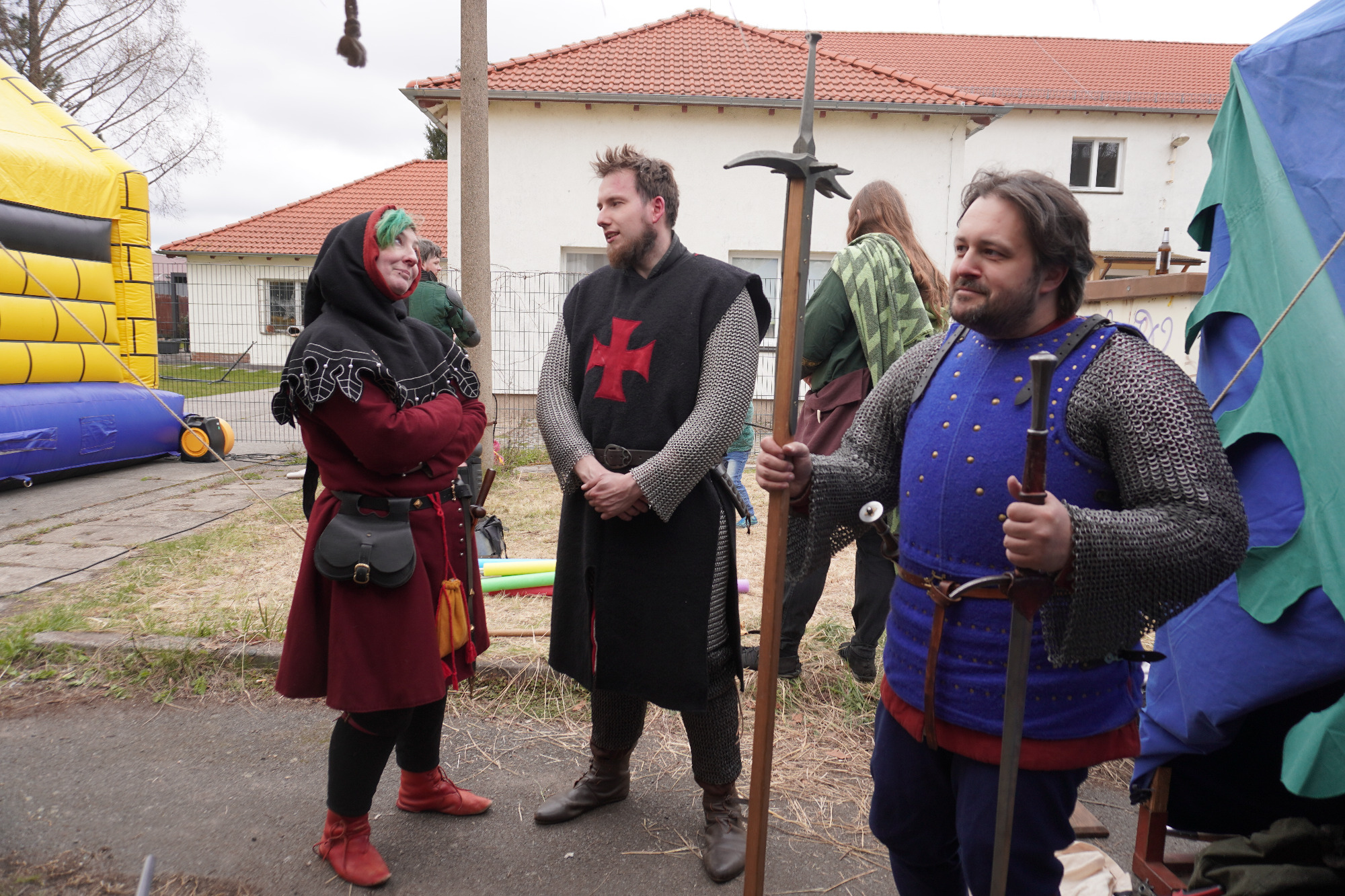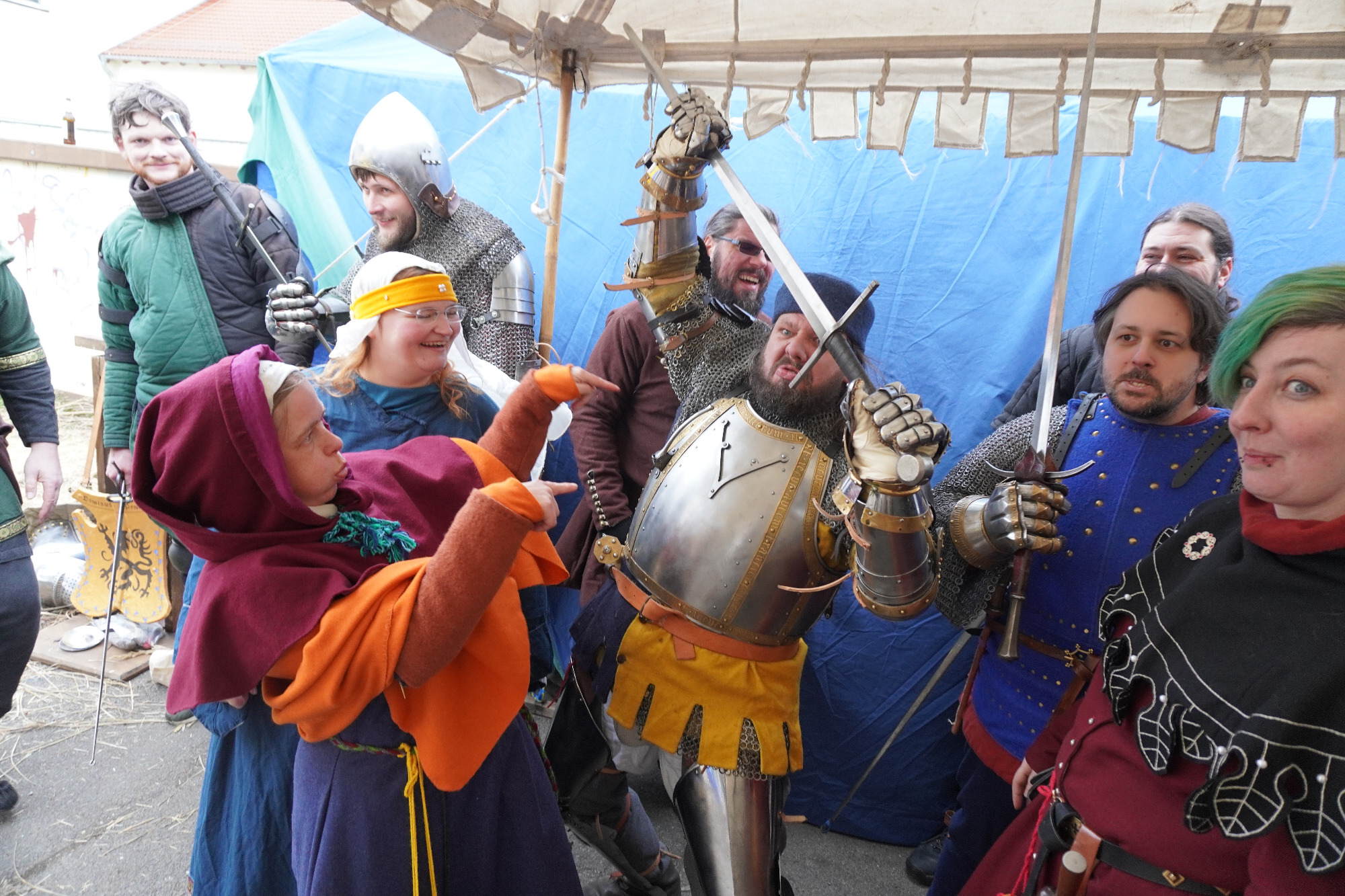 Dabei durfte jeder seine liebste Darstellung wählen. Ob Krieger, Handwerker, Kaufmann, Geistlicher, Adliger oder Bürgerlicher – die ganze bunte Vielfalt unseres Hobbys war vertreten. So kamen viele unterschiedliche Gewandungen zusammen und zeigten einmal mehr, was 1000 Jahre Mittelalter alles zu bieten haben.